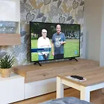 Dieses 60 m^2 große Apartment verfügt über einen Balkon und eine Terrasse, ausgestattet mit einem Sofa und modernen Annehmlichkeiten wie einem Flachbildfernseher mit Satellitenkanälen und WLAN. Diese Unterkunft lädt Gäste in 2 Schlafzimmer ein. Es gibt 2 Badezimmer mit einer getrennten Toilette, einer Badewanne und einer Dusche und einem Haartrockner und Badelaken.